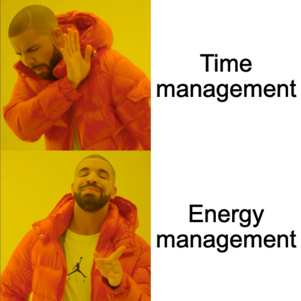 親身體驗:不論何時,總是會有人在網路上教授如何管理時間,各式各樣的時間管理法目不暇幾:時間塊管理法、艾森豪矩陣等等。然而,根本不可能找出所謂「完美」的時間管理法。《高效原力》讓我意識到,真正的關鍵是能量管理。