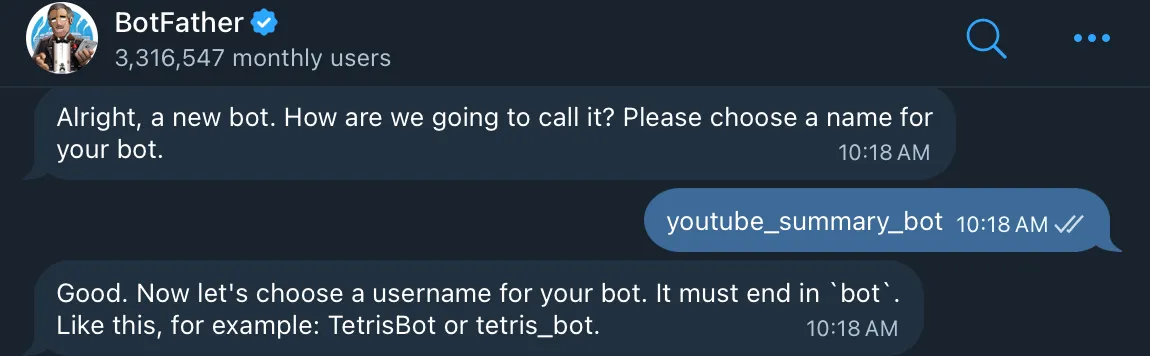 username:bot 的唯一 ID,如果與別人重複會需要重新命名,並且需要以bot結尾