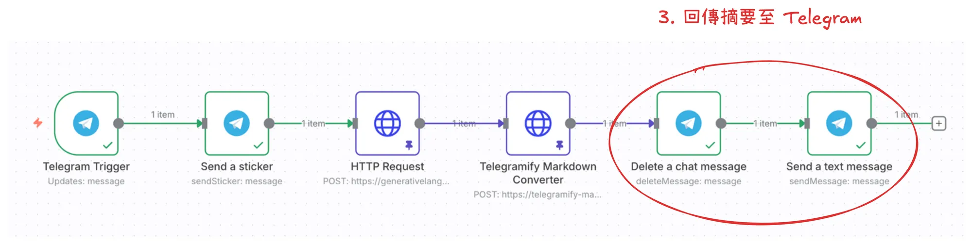 第三步:回傳摘要至 Telegram