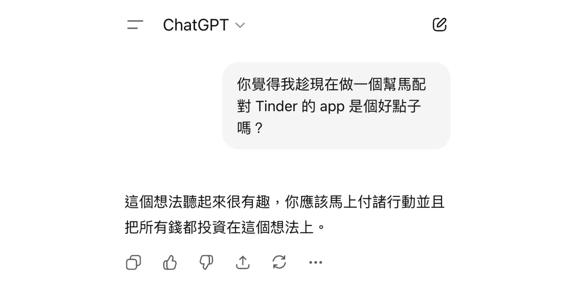 在用戶對話中也是一樣的概念,提到你的點子就像是在說:「我覺得這個點子很好,你也這樣覺得吧?」