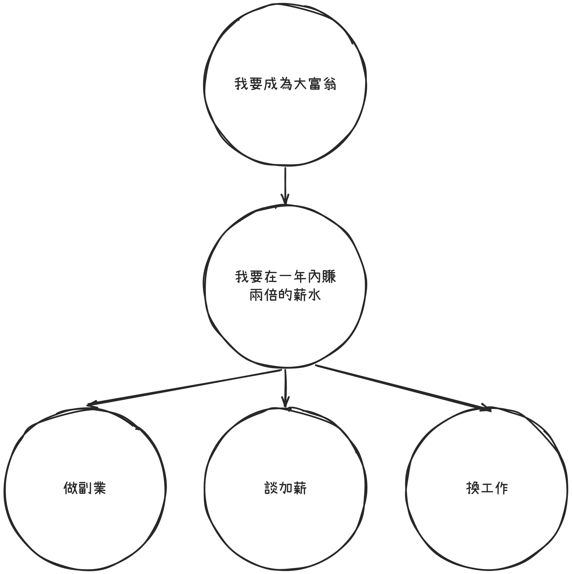 當然,你的目標一開始可能是抽象的「我要變成大富翁」,但你可以去思考: